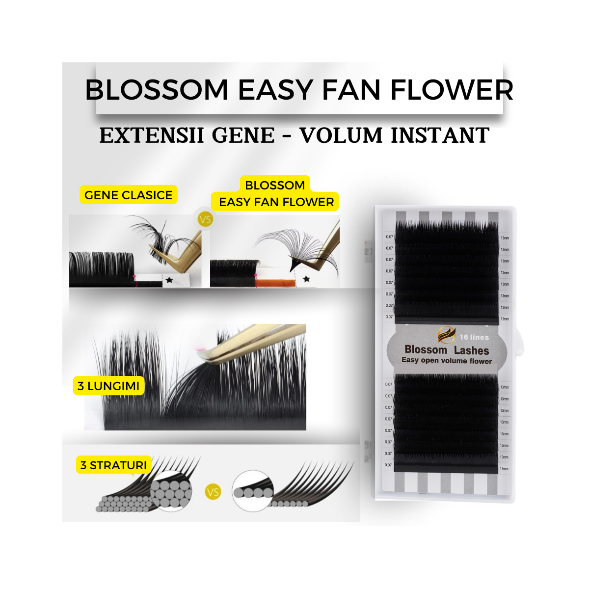 Genele Blossom sunt un brand creat de Monika Orzelowska, denumirea acestora din fabricatie este Easy Fan Flower Lashes. Acestea se produc din 2020 si sunt de foarte mare ajutor la facut evantaiele volum pentru incepatori si mediu-avansati.