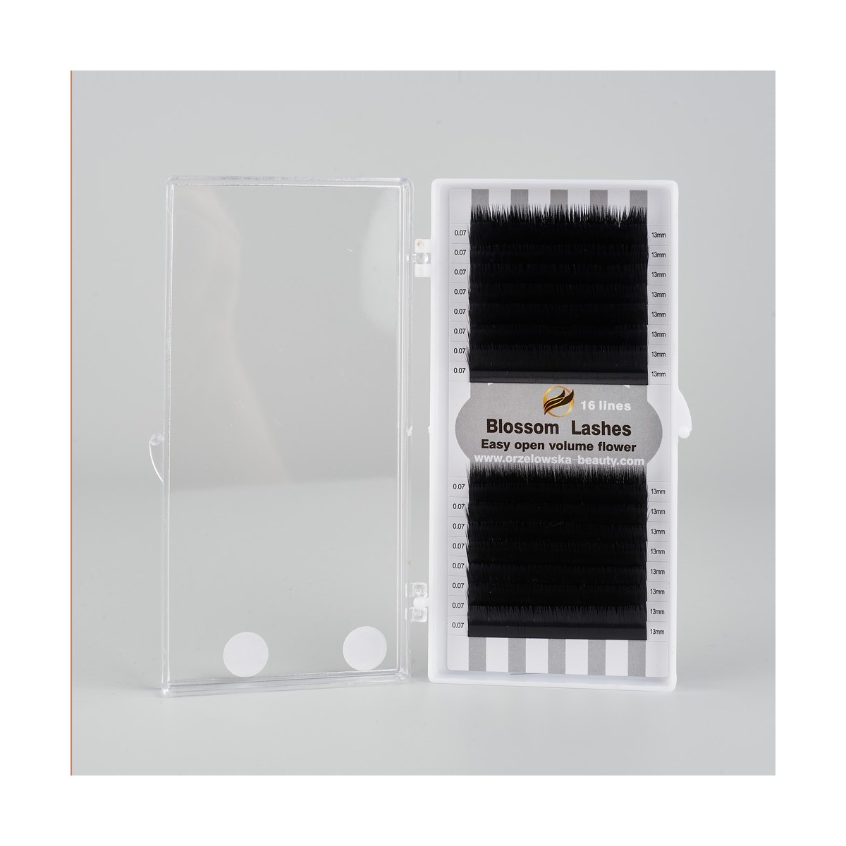 Blossom eyelashes are a brand created by Monika Orzelowska, their manufacturing name is Easy Fan Flower Lashes. These are produced from 2020 and are very helpful in making the volume fans for beginners and intermediate-advanced.