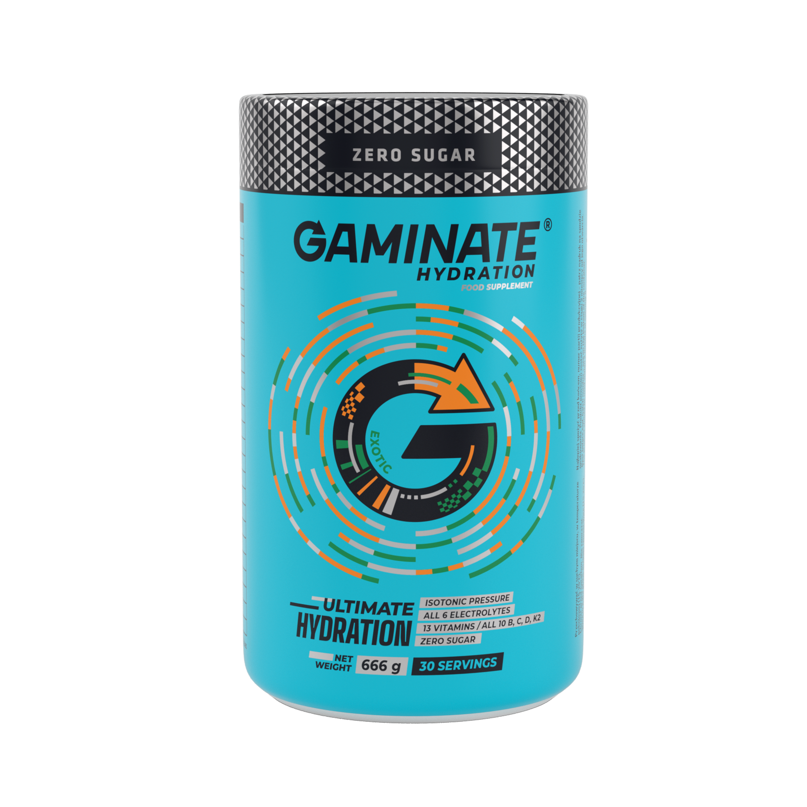 Gaminate Hydration este un izotonic premium pentru Hidratare (sub formă de pudra ce se dizolvă în apă) Este primul și singurul produs de hidratare care nu conține zahăr în timp ce oferă: